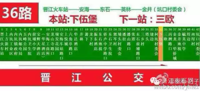1、運(yùn)行線路站點(diǎn):坑口村委會(huì)—南埕村—埕邊—毓英中學(xué)—金井地稅—金龍華僑城—丙洲路口—三歐—下伍堡路口—柯坑村委會(huì)—埭邊—塔頭—三鄉(xiāng)村—前埔路口—張厝—潘山路口—潘徑—埔頭村委會(huì)—郭岑村—東石衛(wèi)生院—僑聲中學(xué)路口—東石地稅—振東酒店—龍下村—蕭下—井林—華達(dá)酒店—六角亭路口—上悅城—安海車站路口—瑞發(fā)花園—成功小學(xué)—龍山寺路口—安海工商所—寶輝大酒店—前埔小學(xué)—內(nèi)坑衛(wèi)生院—五峰公園—內(nèi)坑郵電局—內(nèi)坑鎮(zhèn)政府—內(nèi)坑工業(yè)區(qū)—錦豐—上方—晉江火車站