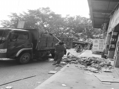 昨日14時30分,記者來到卓女士的店門口看到,滿地的垃圾仍未被清理,隔壁幾家店因為臭味熏天,不得不關(guān)閉店面。