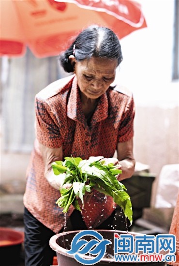 洗一把青菜,奶奶為孫子準備午餐