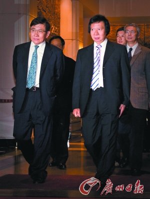 昨日,郭炳江(前右)和郭炳聯(lián)(前左)走出新鴻基中心。新華社記者呂小煒攝