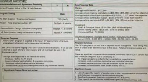 目前,賈躍亭還在美國至今未歸,稱正在全力以赴投入到制造量產(chǎn)汽車和為汽車項目找錢的工作當中,不過,有媒體爆出FF首款電動車FF91的內(nèi)部項目評估報告,包括計劃零售價、平均稅前利潤、量產(chǎn)時間表等具體指標。