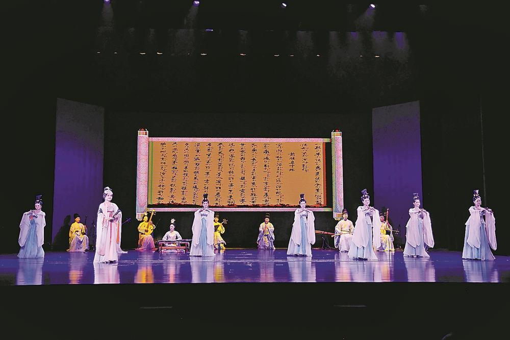 作為聯(lián)合國教科文組織人類非物質文化遺產代表作和國家級非物質文化遺產,南音有1000多年的歷史,其傳統(tǒng)表演形式多為坐唱或站唱?!赌弦艋辍反竽憚?chuàng)新,加入了形體表演,音樂文本聚焦南音千年流衍歷史,莊重不失典雅,恢宏復添細膩。