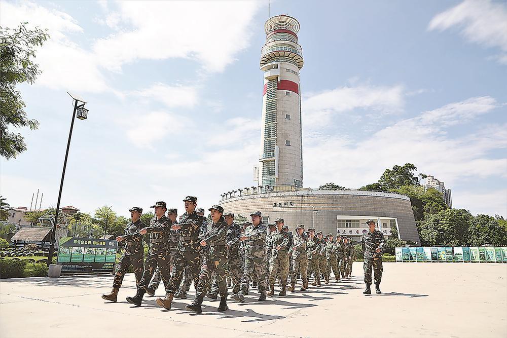 “立正!向右看齊!向前看……”在南炮臺(tái)民兵訓(xùn)練基地,隨著哨長(zhǎng)一聲令下,女民兵們又一次挺拔軍姿,她們踩著晨露,精神抖擻、動(dòng)作整齊。南炮臺(tái)旁矗立著一座68米高的燈塔,這里便是女民兵的營(yíng)盤。