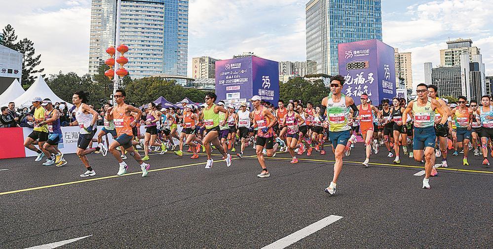 14日,2025福州馬拉松在福州五一廣場(chǎng)鳴槍開(kāi)跑。本屆賽事設(shè)全程馬拉松、半程馬拉松兩個(gè)項(xiàng)目,參賽選手達(dá)3.5萬(wàn)人,其中來(lái)自福州市以外的參賽選手共24610人,占比70.3%;來(lái)自福建省以外的參賽選手共15906人,占比45.4%;達(dá)到大眾精英選手標(biāo)準(zhǔn)的參賽者共5646人。