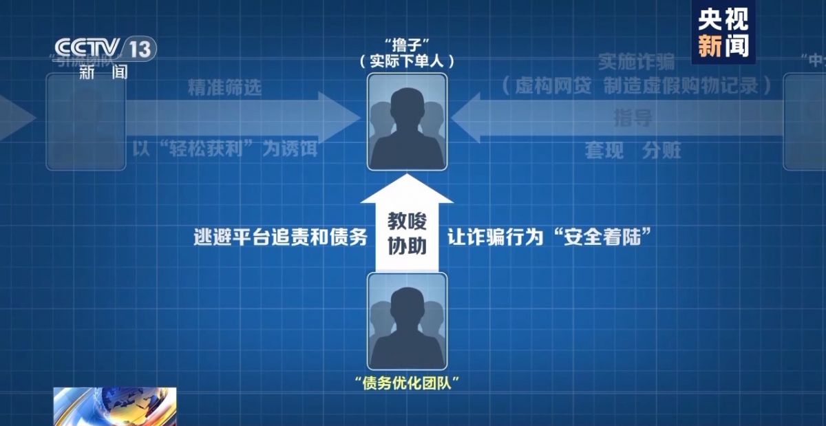余姚市公安局姚東偵查隊(duì)副隊(duì)長 鐘豪:這個團(tuán)伙由股東、引流團(tuán)隊(duì)、中介、擼子、債務(wù)優(yōu)化團(tuán)隊(duì)等組成,其中股東提供公民個人信息,引流團(tuán)隊(duì)根據(jù)信息用高額回報去吸引社會閑散人員成為擼子,而擼子就是案件中的實(shí)際下單人。