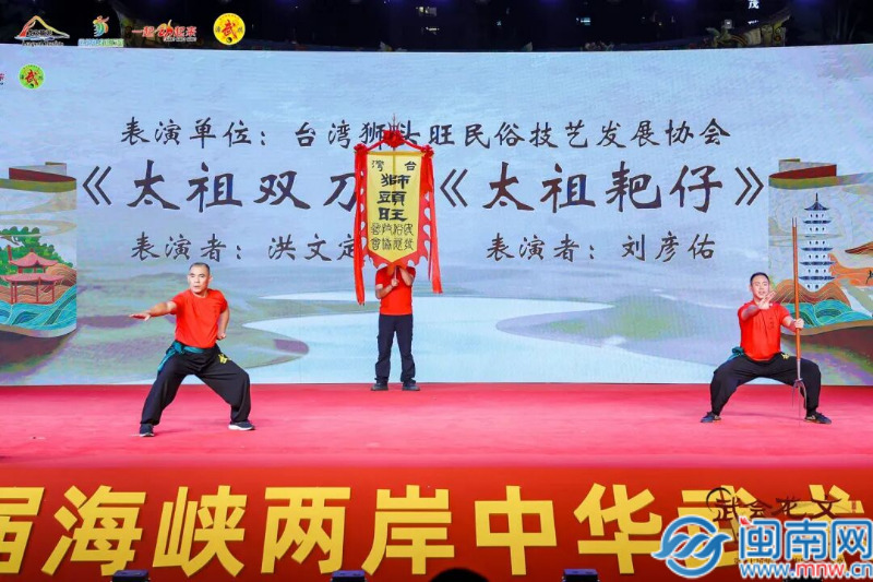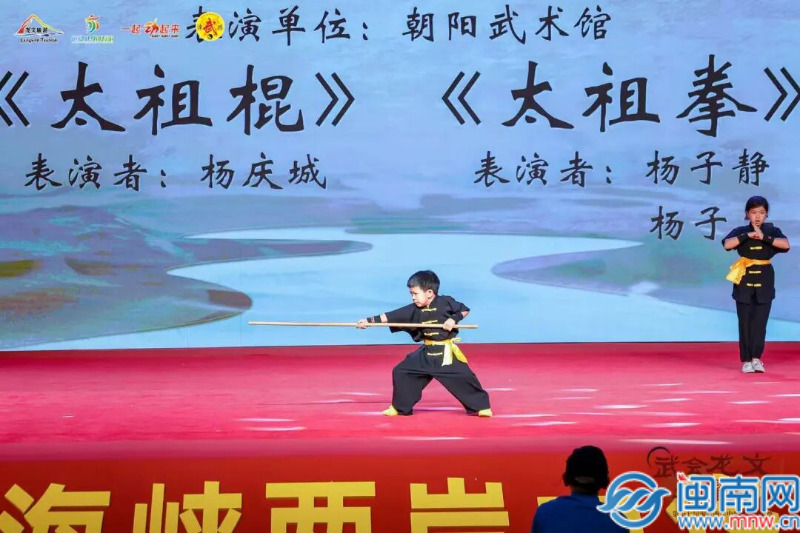 活動(dòng)現(xiàn)場(chǎng),20個(gè)精心編排的節(jié)目輪番上陣,精彩紛呈。何陽(yáng)拳的雄渾有力、獅頭旺的靈動(dòng)剛健、太祖棍的氣勢(shì)如虹……兩岸武術(shù)高手以精湛技藝詮釋中華武術(shù)“剛?cè)岵?jì)、動(dòng)靜相生”的獨(dú)特魅力,更有布袋木偶戲《指掌乾坤》等閩南非遺項(xiàng)目融入其中,為觀眾呈現(xiàn)一場(chǎng)融合視覺(jué)與聽(tīng)覺(jué)的文化盛宴。
