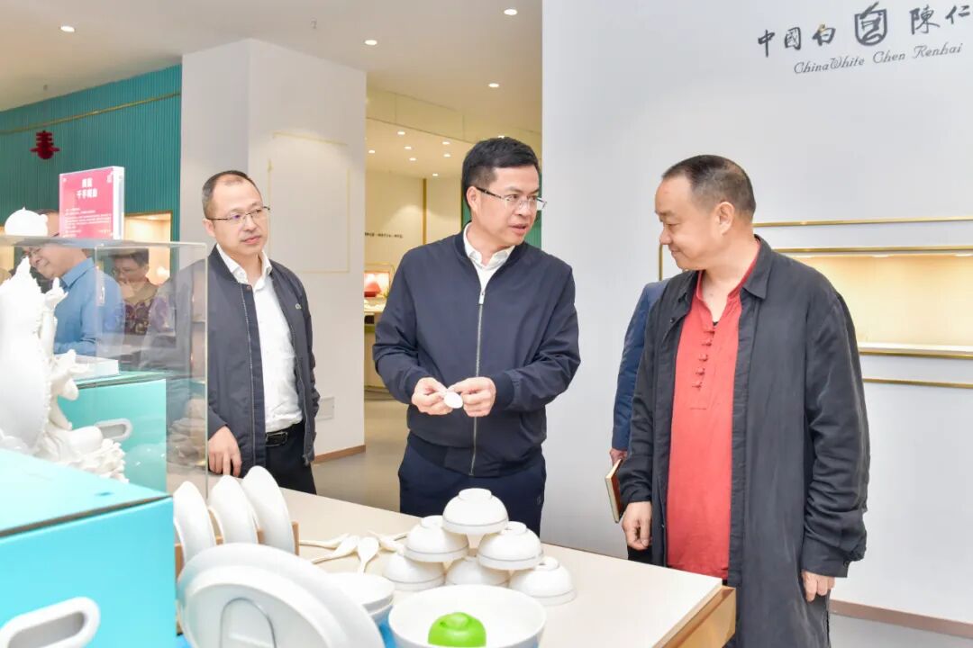 在中國白陶瓷公司,吳志樸與企業(yè)負責人親切交流,詳細了解企業(yè)第四季度生產(chǎn)經(jīng)營情況,以及大師產(chǎn)品創(chuàng)新、市場營銷與文化推廣等內(nèi)容。