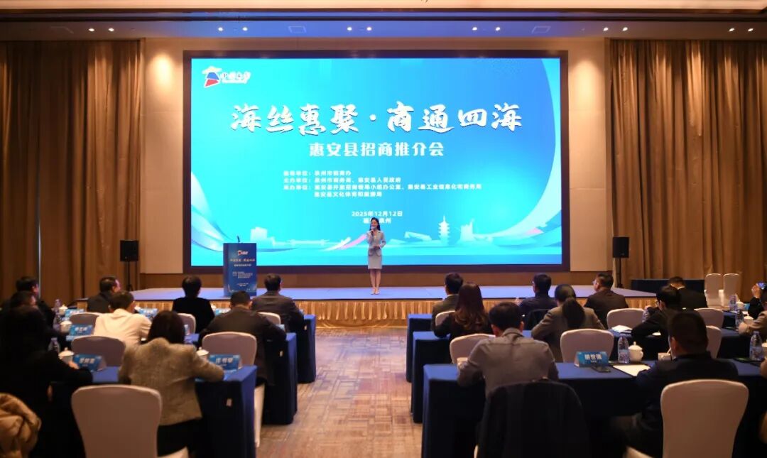 以千年海絲文脈為紐帶,借勢“絲路交響·融通世界”2025年海上絲綢之路國際文化旅游節(jié)的東風,惠安縣于12月12日下午在泉州泰禾洲際酒店成功舉辦“海絲惠聚·商通四海”招商推介專場活動。本次活動由泉州市招商辦指導,泉州市商務局、惠安縣人民政府共同主辦,惠安縣開放招商領(lǐng)導小組辦公室、惠安縣工業(yè)信息化和商務局、惠安縣文化體育和旅游局聯(lián)合承辦。