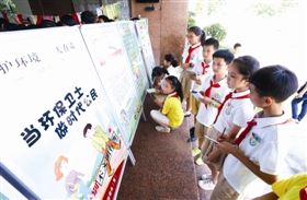 圖為6日下午環(huán)保宣傳服務活動在第二實驗小學開展的情景