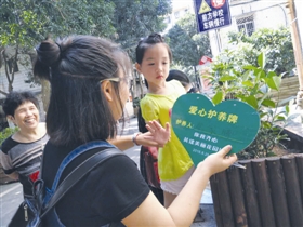“千萬記住,種花時土壤只需要將花的根部掩埋即可,然后澆水,讓花土濕透。”經(jīng)園藝師傅一番簡單而專業(yè)的“種花護花”小知識培訓(xùn)后,社區(qū)社工為參加活動的居民分發(fā)護花牌、花種、花株和種花工具,并指導(dǎo)大家在護花牌上寫上種花人的姓名。一切準(zhǔn)備就緒,社區(qū)居民們便帶著自家的孩子一起為花園城種下花苗,并掛上愛心護花牌。