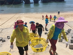 7月1日上午9時許,志愿者如約抵達(dá)東大灣。大約10時許,潮水慢慢退去后,志愿者在會長蔡加漸的安排下有序地開始忙碌。歷時近一個半小時后,約2噸左右的建筑垃圾被清走,東大灣再現(xiàn)銀灘碧海美景。