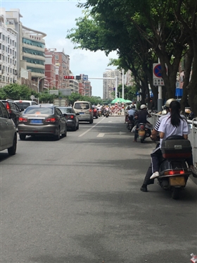 摩托車樹陰下等紅燈成常見現(xiàn)象