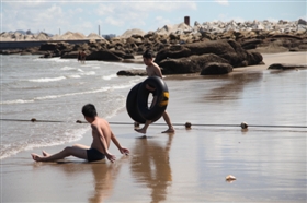 采訪中,記者了解到,到石湖港附近海域游泳的,很多是附近工廠的員工。考慮到正規(guī)救生功能的游泳圈售價(jià)60-80元/個(gè),而石湖港海域附近幾家店鋪出租的“輪胎游泳圈”,價(jià)格只要10-20元/次,且使用時(shí)間不限,因此很多人貪小便宜。然而,像輪胎以及其他簡單充氣式的游泳圈,絕非“救生圈”。從自身安全考慮,請游客們千萬謹(jǐn)慎使用。(記者 劉巧麗 郭雅霞 文/圖)