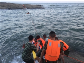7月31日,邊防所、消防、船艇官兵聞警出動(dòng),聯(lián)合作戰(zhàn),在石獅市永寧鎮(zhèn)黃金海岸洛伽寺海域緊急救助3名被困礁石游客。