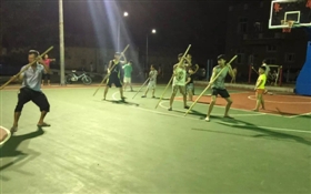 近日,在東園燈光籃球場(chǎng)上,燈火通明,正是獅陣武術(shù)館暑假班如火如荼開(kāi)展時(shí),由3位資深的教練輪流教學(xué),馬步、耍槍等動(dòng)作教得一板一眼。