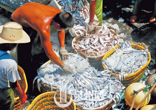 “經(jīng)過(guò)數(shù)月的休漁和臺(tái)風(fēng)的影響,魚產(chǎn)量大增,我的船出去了三天三夜,收獲各種海產(chǎn)品上千斤,不僅數(shù)量比去年多,魚的個(gè)頭也比去年大。”一位船主告訴記者。昨天天氣炎熱,漁民們頂著烈日光著膀子在船上忙碌著,小心翼翼地將各種魚分類放進(jìn)魚筐里,再轉(zhuǎn)移到岸上。岸上的工人們也忙個(gè)不停,或稱魚,或打冰,或裝車……一筐筐新鮮的魚貨從這里出發(fā),要在最短的時(shí)間內(nèi)出現(xiàn)在大家的餐桌上。(記者 王柏峰 胡彥明 攝影報(bào)道)
