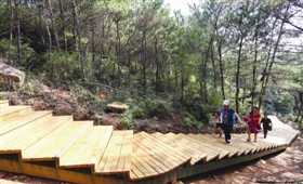 便捷的木棧道、舒適的坐椅、顯著的標牌……近日,記者前往靈秀山森林公園看到,經過六個月緊鑼密鼓的施工,涉及登山步道、進出山主道等道路建設,以及觀景臺、公廁等配套設施建設的靈秀山森林公園一期工程已全部完工并通過驗收。