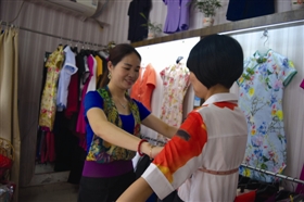 裁布、修邊、縫紉……工作臺前,董燕燕熟練地操作著,不一會兒,一件漂亮的旗袍就初現(xiàn)雛形。她的服裝店面積不大,前面是櫥柜,掛著各種款式的服裝,旗袍、制服、襯衣,主要作為樣品展示用。后面是她的工作間,一臺縫紉機(jī)、一張工作臺、一些半成品的服裝,不到10平方米的工作間被這些制衣器械、服裝原料所占據(jù)。而就是這處不大的地方,成了董燕燕事業(yè)的起點(diǎn)。“我從事服裝行業(yè)已經(jīng)有20多年了。”董燕燕介紹說,初期她只是幫人代工制衣,后來自己開了個裁縫店,以量體裁衣,接受顧客私人定制服裝為主,偶爾也會接受修修褲腳之類的小活。2013年,她成了湖濱街道“幸福工程”計(jì)生幫扶項(xiàng)目的對象,獲得了幫扶資金后,董燕燕升級了設(shè)備,更換了電腦智能縫紉機(jī),制衣效率提高了,顧客訂單也多了起來,生意慢慢越做越大。“現(xiàn)在我主要以接受附近酒店的制服訂單為主。成批地加工制作服裝。”董燕燕介紹說,生意多了,自己一個人忙不過來就請工人,讓附近家庭幫忙代工制衣。不僅自己走上致富路,也帶動了社區(qū)就業(yè)率。
