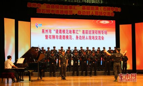 本次巡演由泉州市委文明辦、泉州市文聯(lián)、石獅市文明委主辦,石獅市委文明辦、石獅市文聯(lián)承辦。巡演旨在充分發(fā)揮道德模范和身邊好人的道德引領(lǐng)作用,掀起新一輪學(xué)習(xí)道德模范、崇尚道德模范、爭(zhēng)當(dāng)?shù)赖履7兜臒岢保尭嗟娜顺蔀榈赖碌膫鞑フ吆哇`行者。(本網(wǎng)記者 鄧馴)
