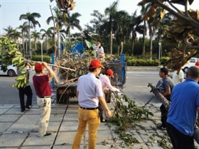 “莫蘭蒂”過(guò)后,市政府廣場(chǎng)大量樹(shù)木受損嚴(yán)重,有的被吹斷枝干倒伏,有的被連根拔起。對(duì)此,市委辦機(jī)關(guān)支部以實(shí)際行動(dòng)在恢復(fù)災(zāi)后生產(chǎn)上作出表率,組織市委辦、檔案局、信訪局黨員志愿者30多人積極投入到清理工作和災(zāi)后恢復(fù)重建工作中,先后對(duì)廣場(chǎng)路面進(jìn)行清理,并對(duì)倒伏的樹(shù)木加緊進(jìn)行修剪、扶正、加固,對(duì)于無(wú)法救活的樹(shù)木則組織車輛清運(yùn),以盡快恢復(fù)市政府廣場(chǎng)的正常秩序。(記者 許小雄)