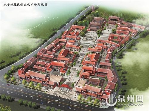 永寧城隍廟閩臺民俗文化園廣場及中軸景觀的效果圖。 (石宣)