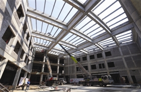 石獅市醫(yī)院新院項(xiàng)目是石獅市委市政府一項(xiàng)重要的民生工程,是泉州市重點(diǎn)建設(shè)項(xiàng)目。該項(xiàng)目總占地面積19.9萬(wàn)平方米,建筑總面積約16.5萬(wàn)平方米,工程概算總投資87063萬(wàn)元。從2011年開(kāi)始,計(jì)劃利用六年的時(shí)間完成建設(shè)任務(wù)。到目前,門(mén)診樓結(jié)構(gòu)已驗(yàn)收,室內(nèi)墻體內(nèi)墻砌筑完成,排水系統(tǒng)完成82%,強(qiáng)電橋架完成78%;醫(yī)技樓結(jié)構(gòu)已驗(yàn)收,室內(nèi)墻體內(nèi)墻砌筑完成,通風(fēng)、空調(diào)、消防等管道安裝完成85%;住院樓結(jié)構(gòu)已驗(yàn)收,室內(nèi)墻體內(nèi)墻砌筑基本完成,通風(fēng)、空調(diào)、消防等管道安裝至18層。門(mén)診樓、醫(yī)技樓外幕墻工程完成95%,住院樓外幕墻工程施工至85%;門(mén)診樓、醫(yī)技樓、住院樓屋面防水保溫及保護(hù)層施工完成;地下室裝修工程完成50%,樓梯間、機(jī)房粉刷施工完成71%。
