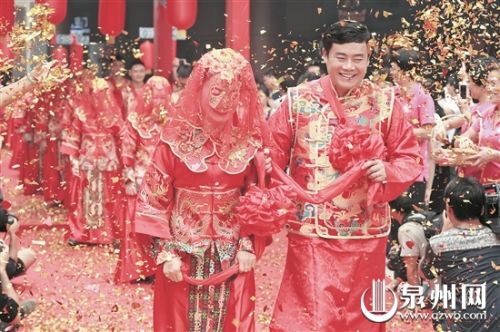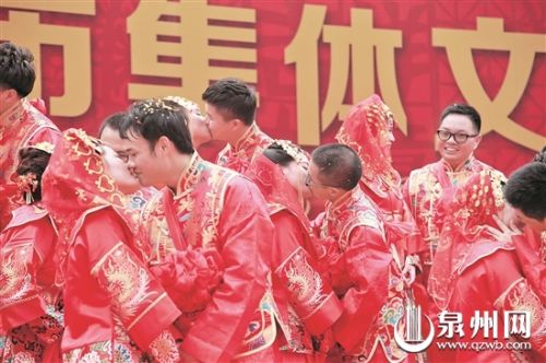 過幸福亭、跨火盆、走同心圓、掀起紅蓋頭、許下諾言……“緣聚獅城·恩愛永恒”2016年石獅市集體文明婚禮昨日舉行,46對(duì)新人在現(xiàn)場的親朋好友、單位領(lǐng)導(dǎo)同事以及路人共同見證下喜結(jié)良緣。