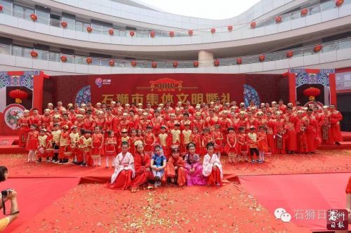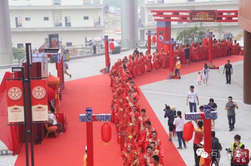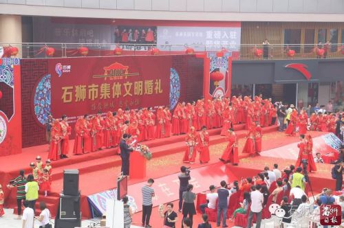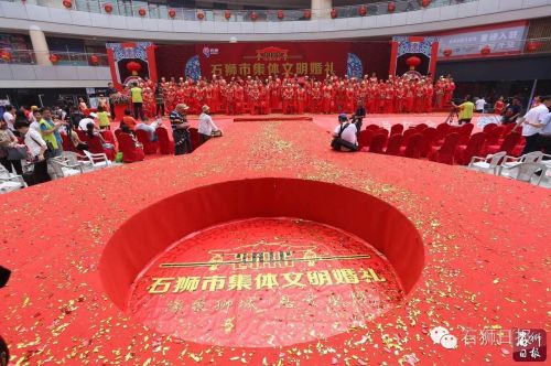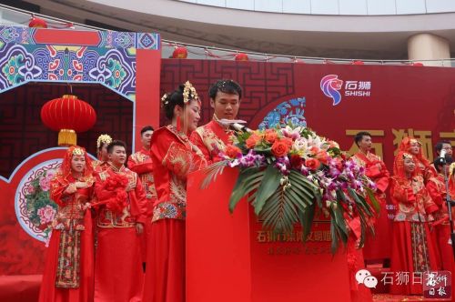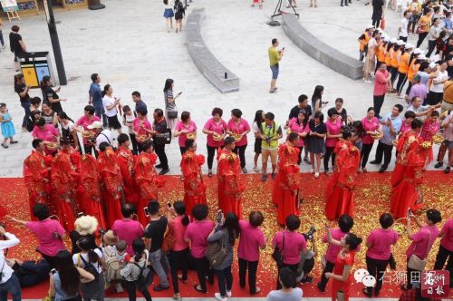 良辰美景成人美,濱海新城幸福來。10月27日上午,在喜慶的樂曲聲中,一場充滿閩南婚俗韻味的中式婚禮——“緣聚獅城·恩愛永恒”2016年石獅市集體文明婚禮在世茂·摩天城噴泉廣場熱鬧舉行,46對身穿鳳冠霞帔、狀元袍的新人喜結(jié)連理,共同見證幸福。泉州市總工會副主席陳寶芳,石獅市人大常委會黨組書記上官躍進,石獅市政協(xié)黨組書記林自育,石獅市委副書記莊玉海,石獅市委常委、組織部長楊德才等參加儀式。