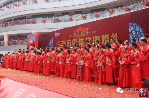 當天上午10時,新人們腳跨火盆、走過幸福亭,攜手登上婚典臺。在司儀的主持下,完成三拜堂、掀蓋頭等儀式,并在市領(lǐng)導(dǎo)、親屬和市民的見證下許下鄭重誓言……整場婚禮既別開生面,又簡約浪漫,不少新人感嘆這種傳統(tǒng)并富有紀念意義的婚禮方式,給他們留下了美好而難忘的記憶。