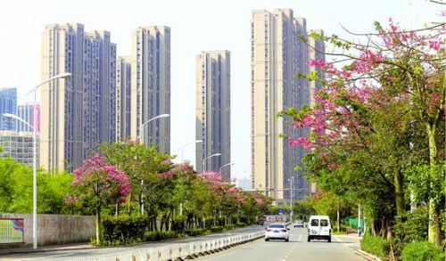 11月6日,在宋塘路記者看到,兩旁種植的美人樹已花繁葉茂,枝頭上盛開的粉紅色的花朵與整潔的道路和新建的樓房構(gòu)成一幅美麗的風(fēng)景。近年來,市委、市政府加大對道路綠化與彩化建設(shè),目前已卓見成效。(記者 顏華杰)