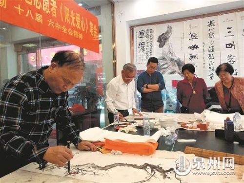 昨日,由泉州市老年書畫研究會、石獅市老年書畫研究會等單位聯合舉辦的“南華軒第二屆老年書畫研究陽光愛心筆會”在石獅南華軒舉行。