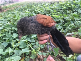 當日上午11時40分,龔輝程在正源生態(tài)園勞作時,突然飛來一只“大鳥”。龔輝程抓起一看,發(fā)現(xiàn)那只鳥身上長著十分奇特的羽毛,黑色的嘴較為粗厚,通體除翅和肩部外全為黑色,頭、頸和胸部閃耀著紫藍色的光澤。兩翅為栗褐色,肩和肩的內(nèi)側(cè)為栗色。他不知道是什么鳥,但還是查看了一下鳥兒身體是否有受傷。見大鳥沒受傷,他隨即把鳥放走了。