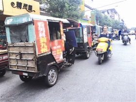 據(jù)附近商戶反映,這些港田車司機(jī)一大早就過(guò)來(lái)排隊(duì)載客,天天如此。記者現(xiàn)場(chǎng)觀察,港田車車隊(duì)占去了馬路寬度的三分之一,經(jīng)過(guò)的車輛都要減速慢行。記者還發(fā)現(xiàn),在菜市場(chǎng)的一些小巷里也有港田車“擋道”。港田車集中在鄉(xiāng)下一些主要交通路口和菜市場(chǎng)周邊,車身狹窄,但經(jīng)常載著四五個(gè)人。而車門也并不安全牢固,乘客稍有不慎還會(huì)有掉下去的危險(xiǎn)。“每次坐港田車都感覺是坐了一次‘云霄飛車’。一些司機(jī)左沖右突,開得非常快。真擔(dān)心剎車來(lái)不及。”村民盧先生說(shuō)。“要是遇到急轉(zhuǎn)彎時(shí)還很容易發(fā)生側(cè)翻。”