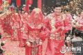 2016-10-28 11:10 來源:教師進(jìn)修學(xué)校過幸福亭、跨火盆、走同心圓、掀起紅蓋頭、許下諾言……“緣聚獅城·恩愛永恒”2016年石獅市集體文明婚禮昨日舉行,46對新人在