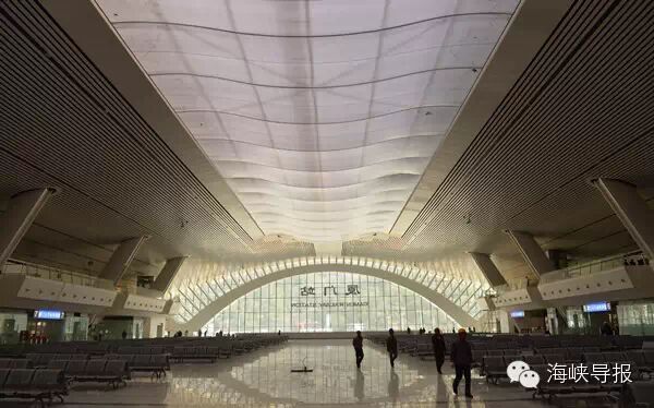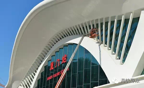 由于朝南,晴天時(shí)廈門站南廣場陽光充足。在陽光照射下,外觀如同白鷺展翅、又像古典拱橋的南站房,透露出現(xiàn)代與古典的雙重氣息。