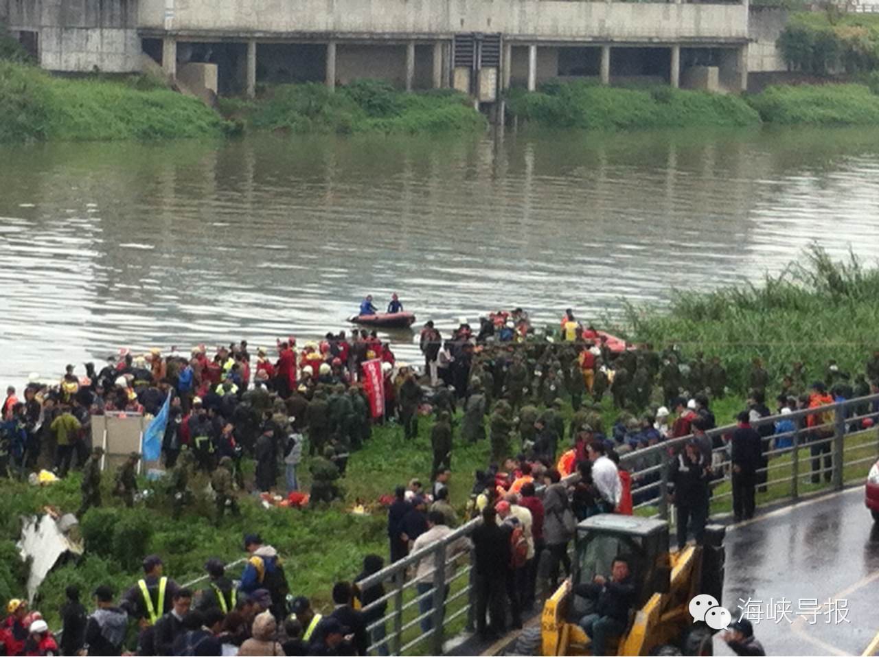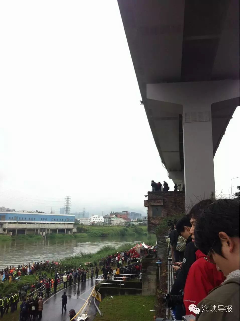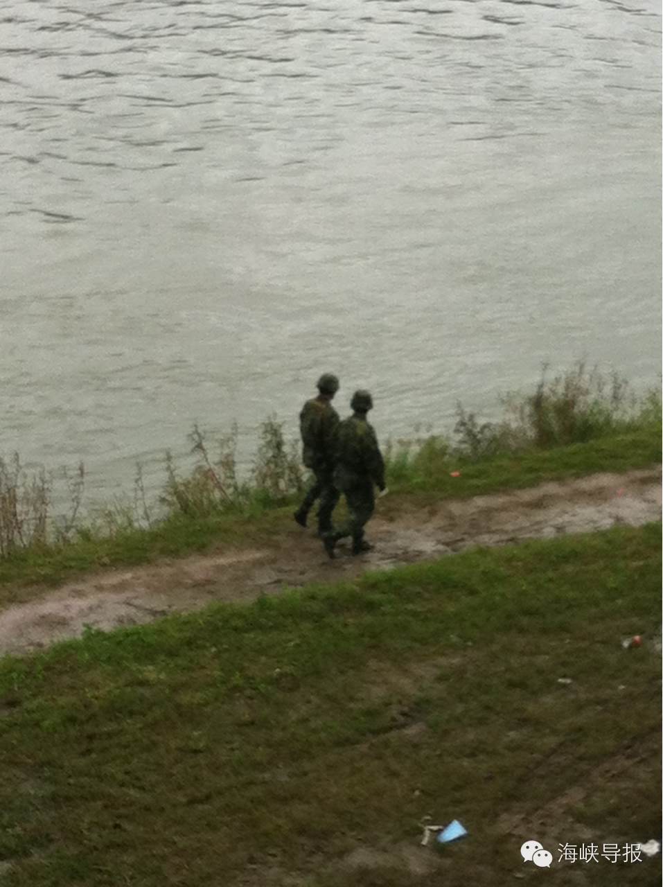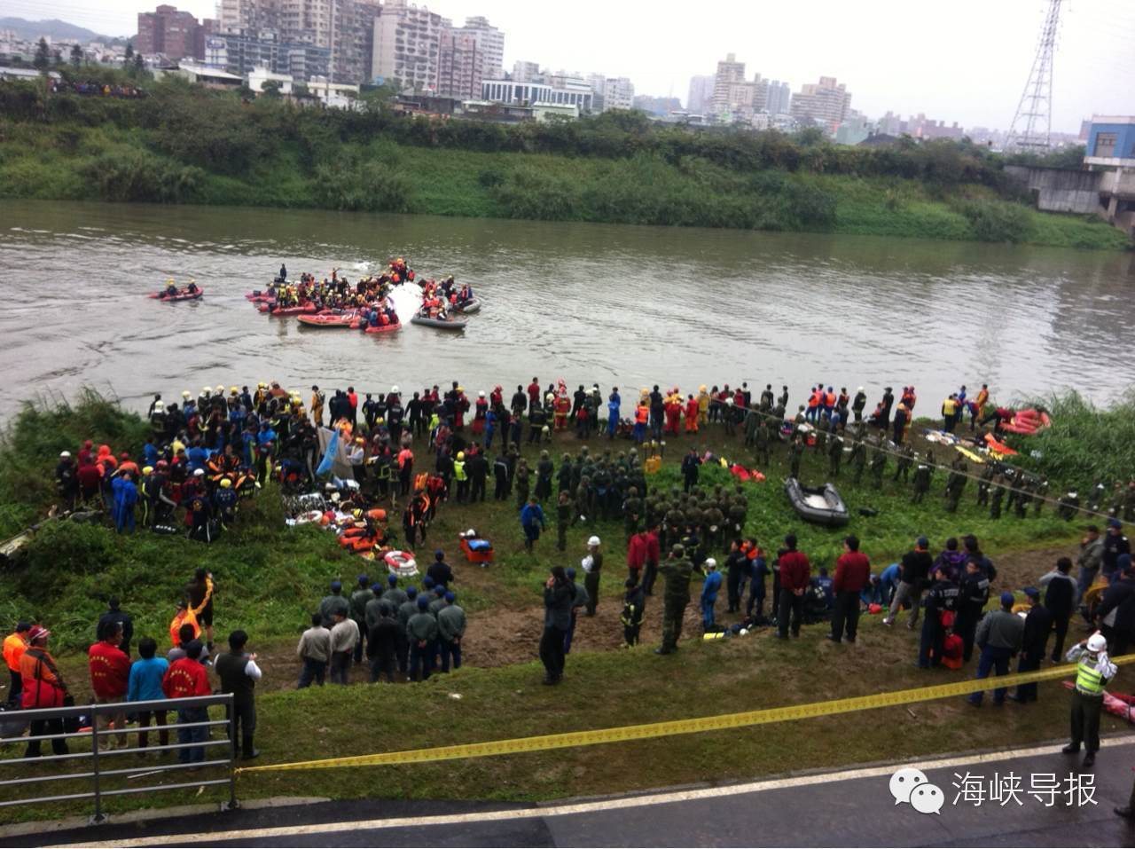 【尋找下落不明人員】導(dǎo)報駐臺記者吳生林爬到基隆河的防洪堤上,大概有10來艘皮劃艇在失事地點附近來回搜救,尋找下落不明人員。